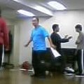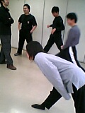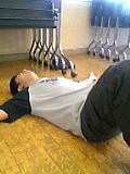 キャスト決定記念ということで気合いを入れまくって練習しました。翌日筋肉痛になるくらいハードな練習でした。ちなみに彼はへばってます。と、みせかけて発声練習を一所懸命やっています。 (小島弘光) |