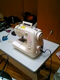 稽古場にミシン登場!! 運んできたのは座長。手足に痛みを訴えています。稽古も作業もいよいよ大詰め。稽古風景を撮ろうと思ってたのに、忘れてしまうくらい、いっぱいいっぱいです。 (三好理代) |